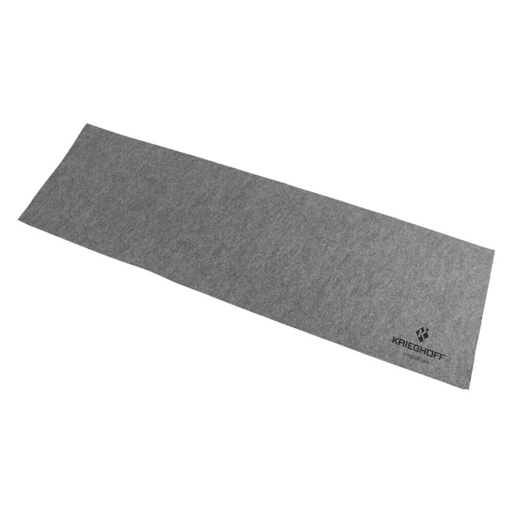 Krieghoff Felt Cleaning Mat! This great felt mat can be spread on any surface so you can lay your gun down safely. It measures a little over 39″ long and a little less than 12″ wide. The felt itself is around 1/8″ thick and has an anti-skid rubberized material on the back. Features the Krieghoff logo on the bottom right.